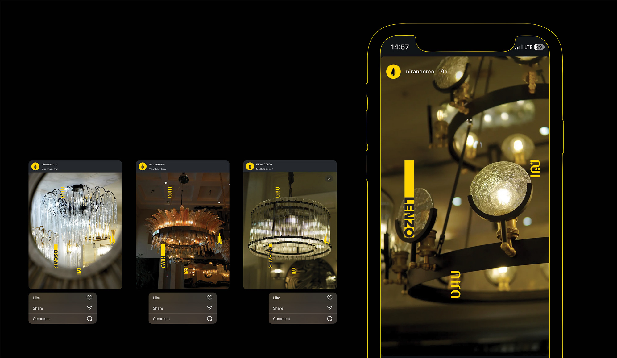 Nira’s patterns are fluid, dynamic, and smooth, in harmony with the nature of fire and water. They express Nira’s modern, progressive, and forward-looking approach in the lighting and furniture industry.